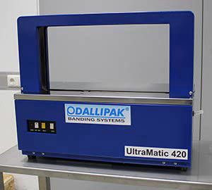 Alternativ kann das Produkt aus der Banderoliermaschine geschoben werden, nachdem das Produkt banderoliert wurde. Ein weiterer Punkt ist die genaue Positionierung der Banderole. Diese ist durch den Linear-Antrieb präzise einstellbar. Ebenso ist das Anbringen von mehreren Banderolen möglich. Die banderolierten Artikel werden anschließend auf eine nicht angetriebene Rollenbahn transportiert. Auf Wunsch kann diese als angetriebene Rollenbahn geliefert werden.