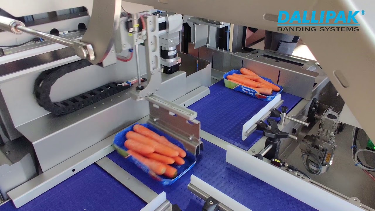 Bei dieser Maschine zeigen wir die Verwendung von bedrucktem Banderoliermaterial. Die Produkte (zb. Lebensmitteltassen) werden von der Produktionsmaschine direkt auf unsere Fördertechnik übernommen, ausgerichtet und durch die Banderoliermaschine gefördert und bei der gezeigten Anlage mittig banderoliert.